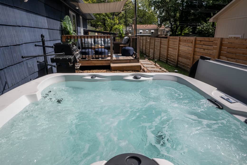 Experience modern comfort in this three-bed, two-bath Lee’s Summit retreat. Relax in the private hot tub, gather around the swinging fire-pit chairs, charge your EV, and enjoy a fully fenced backyard oasis. Inside, the open-concept living room features a cozy fireplace, a fully equipped kitchen, a premium coffee bar, and a game room for hours of fun.